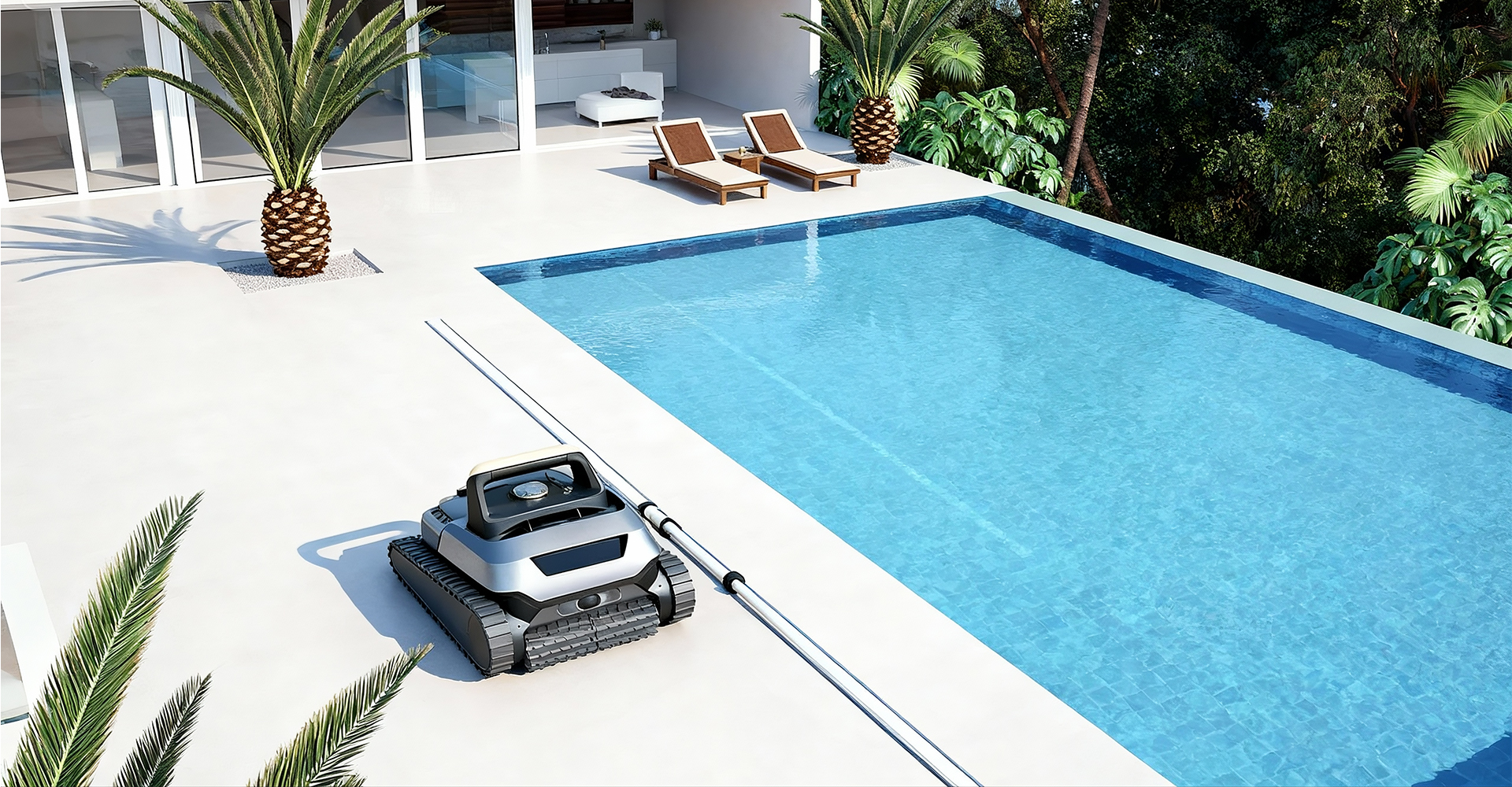 外觀造型采用了緊湊且堅固的箱式結構,機身線條硬朗,給人一種穩重可靠的感覺。外殼材質選用了高強度工程塑料,既保證了機器人的耐用性,又減輕了整體重量,便于在水中靈活移動。銀灰與黑色的經典配色,不僅彰顯機器人的強悍,還能與不同風格的泳池環境相融合,顯得低調而不失科技感。
